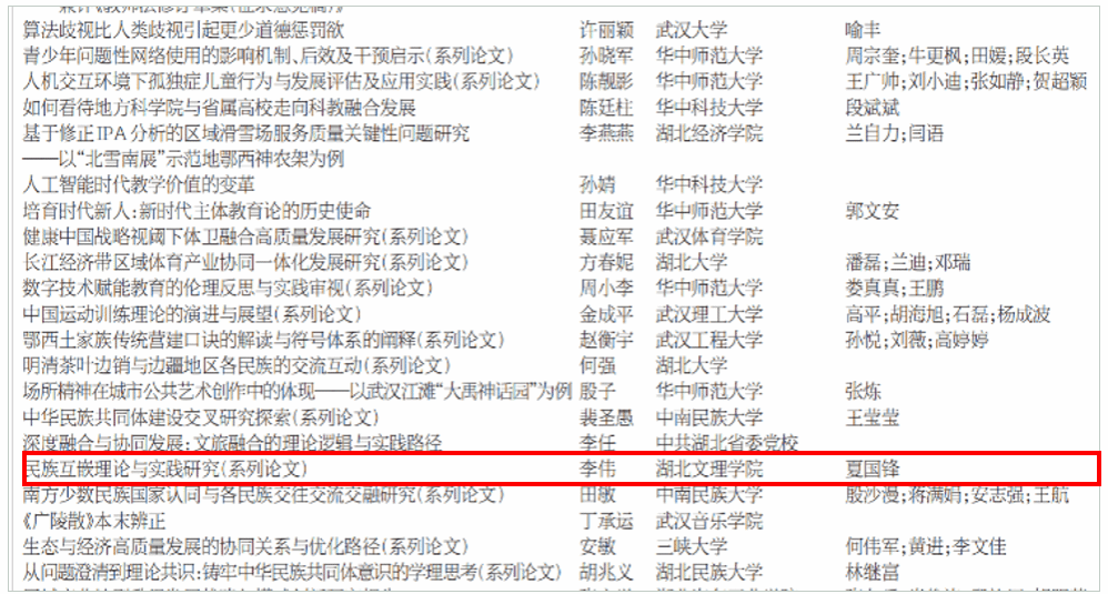 (政法学院 通讯员 王鑫悦)近日,湖北省人民政府发布《湖北省人民政府关于表彰第十四届湖北省社会科学优秀成果奖的通报》,政法学院社会学系李伟博士申报的《民族互嵌理论与实践研究》系列论文斩获三等奖佳绩。近年来,李伟博士深耕“民族互嵌”专题,在《青海社会科学》《理论视野》《民族论坛》《西北民族大学学报》等核心期刊发表多篇高质量研究论文,CNKI累计近10000次下载和200多次转引,在该研究领域产生了一定的影响力。