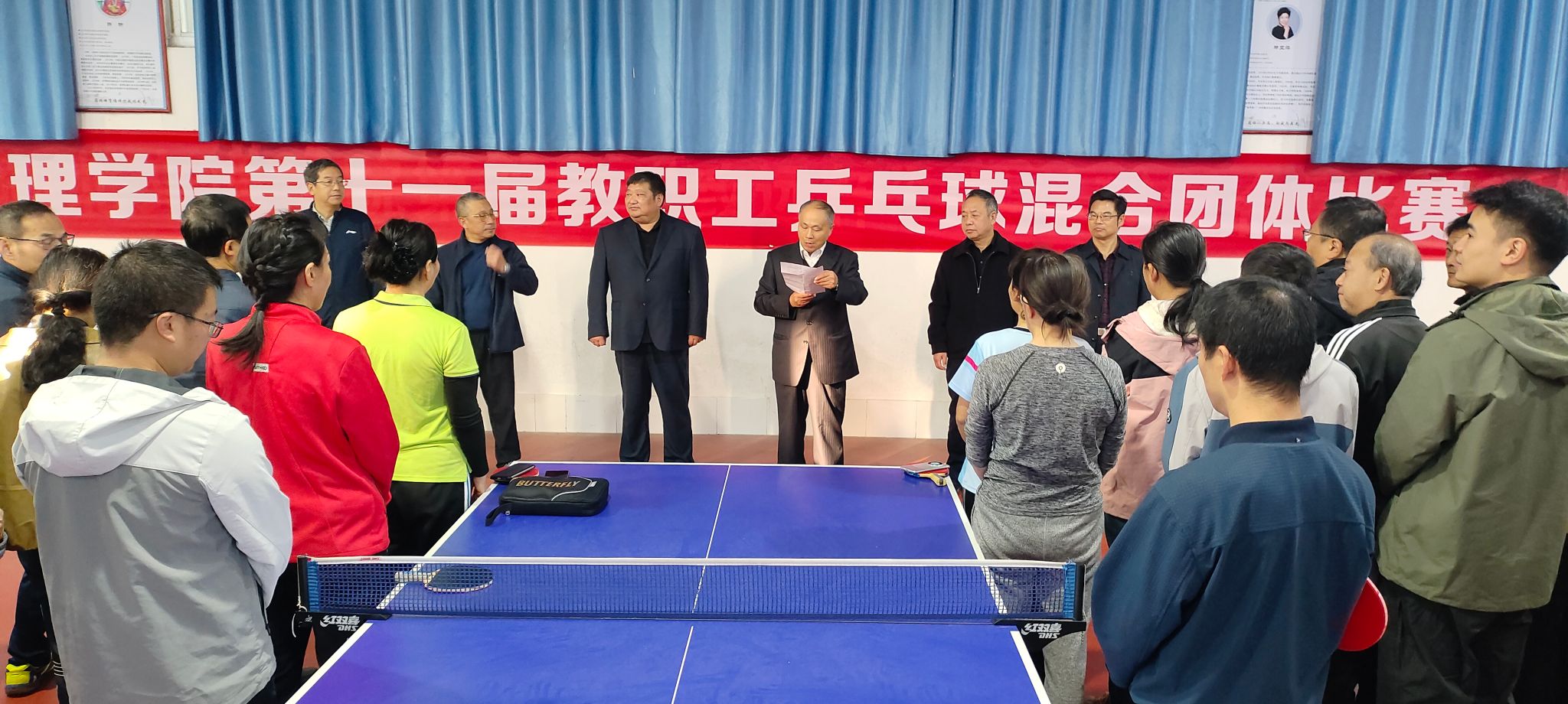 (政法学院 通讯员 周敏)秋风送爽,硕果飘香。为丰富我校教职工文化生活,提高教职工健康素质,10月31日,学校工会隆重举行湖北文理学院第十一届教职工乒乓球混合团体比赛。副校长、工会主席曹健宣布比赛开幕。学校第十一届教职工乒乓球混合团体比赛组委会主任、校工会常务副主席刘浩在开幕式致辞。学校乒乓球协会会长高敬伟主持开幕仪式。