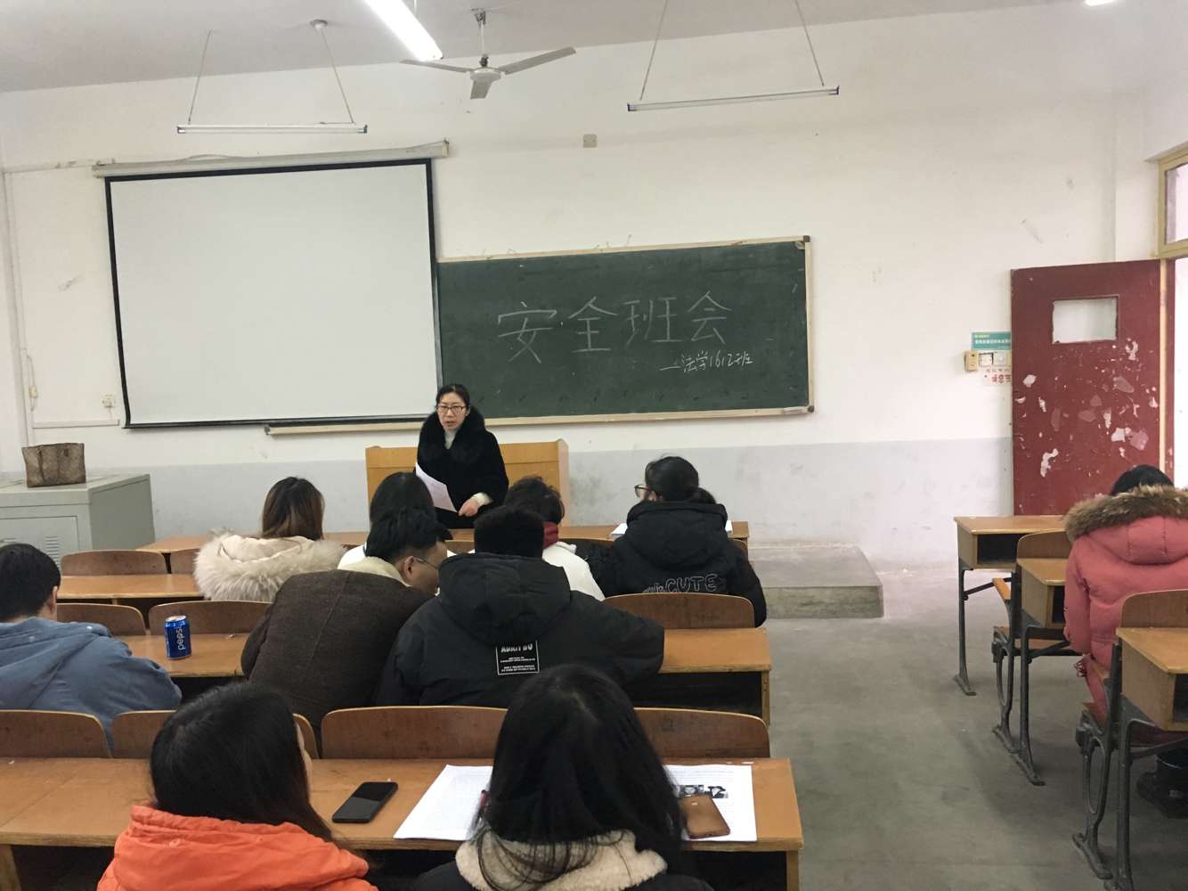 (政法学院 通讯员 陈都河川)2月24日晚,政法学院召开新学期第一次以“珍爱生命,预防隐患,安全第一”的主题班会,班会由各班班主任主持。政法学院党委副书记汪萃萃和学工办老师一起深入各班参加了主题班会。