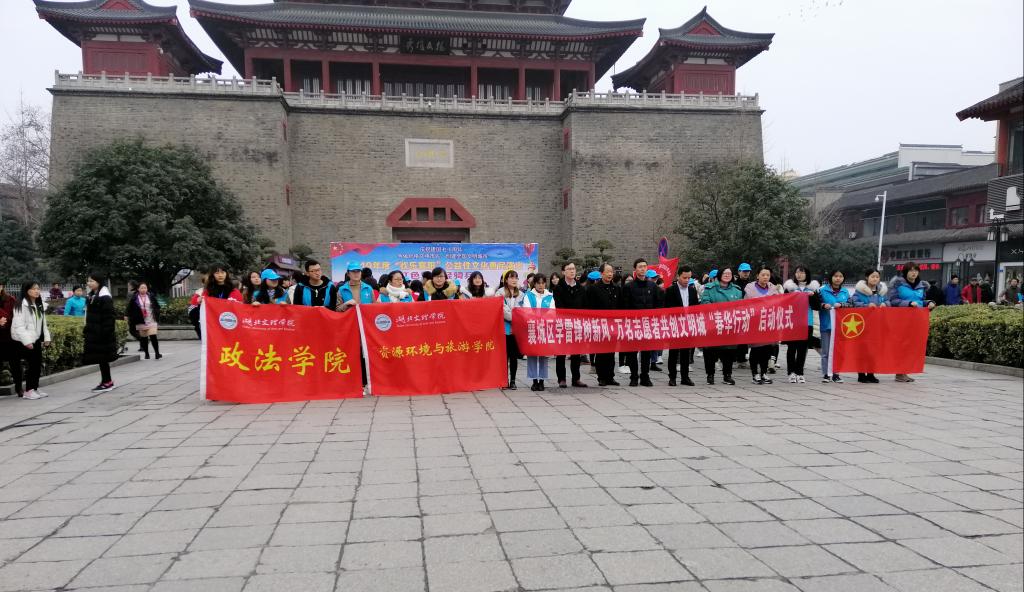 (政法学院 通讯员 杨清静)三月春风暖人心,雷锋精神与我同行,雷锋精神闪烁着时代的光芒,像一阵春风吹遍每一个角落。为了学习并大力弘扬雷锋精神,助力文明城市的创建,2019年3月3日上午9时政法学院分团委15名志愿者一起在昭明台参加了由共青团襄城区委、襄城区文明办、湖北文理学院资源环境与旅游学院、湖北文理学院政法学院联合组织的“万名青年志愿者,共创文明新襄城”启动仪式,并进行了相关志愿服务活动。