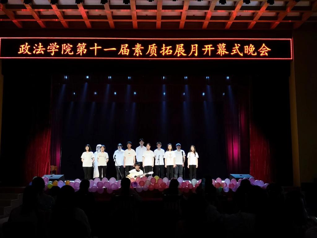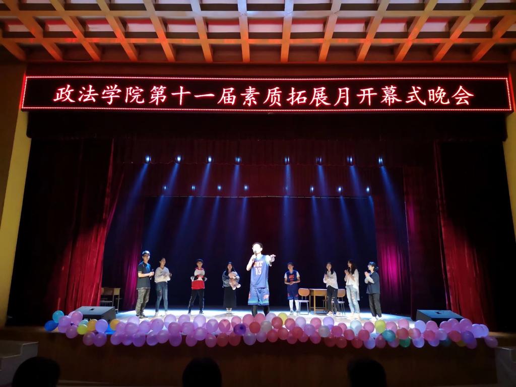 (政法学院 通讯员 申浩岐)“书声琅琅,隆重未央。素质拓展,放飞理想。”4月25日晚,由政法学院文艺部和学习部共同承办的第十一届素质拓展月开幕式晚会于南区致远餐厅二楼隆重开幕。出席本次晚会的有政法学院党委副书记汪萃萃、学工办、班主任老师以及全体学生干部和大一同学。