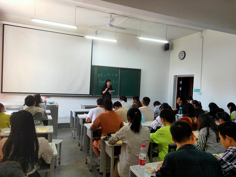 (政法学院 通讯员 王柳)2019年9月23日下午,社会工作专业16级全体学生在北区7栋103教室举行毕业实习动员大会,会议由社会学系主任马国瑾主持。