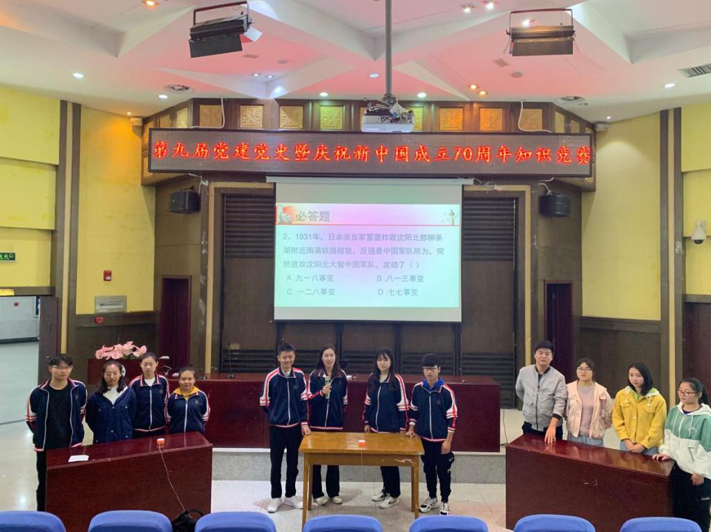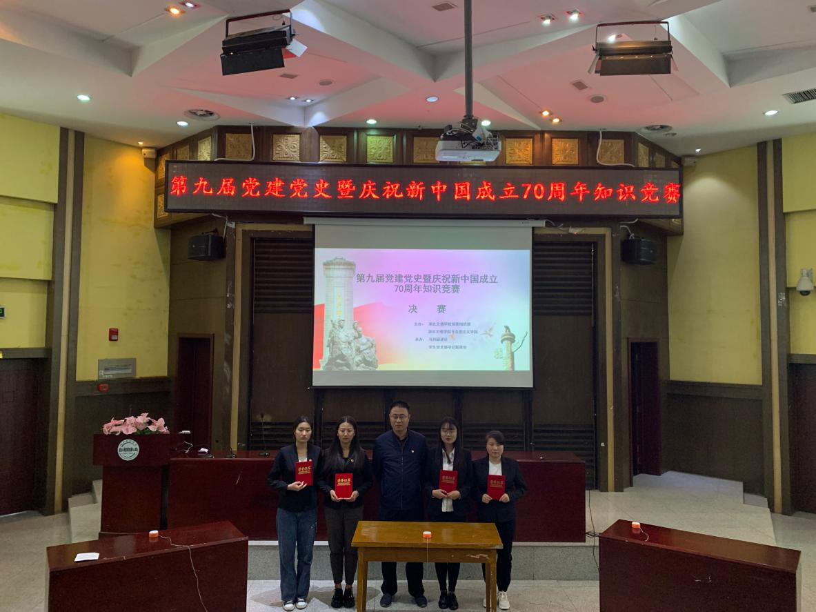 (马克思主义学院 通讯员 柳奥)为庆祝新中国成立70周年,10月31日晚,以“壮丽70年·奋斗新时代”为主题的第九届党建党史暨庆祝新中国成立70周年知识竞赛决赛在行政楼一楼报告厅举行,马克思主义学院、政法学院党委书记王礼刚、党委副书记汪萃萃、马列研读社指导老师王遂敏出席本次决赛,马克思主义学院教授詹学德等7名专业教师担任决赛评委。