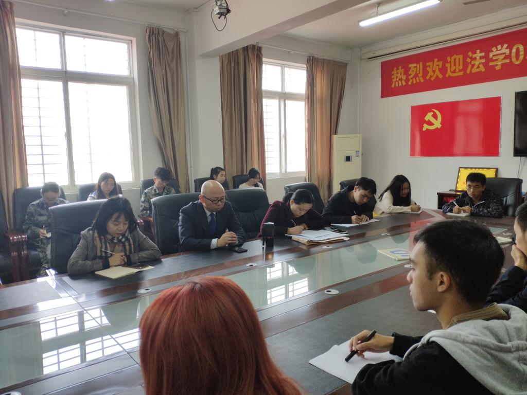(政法学院 通讯员 邢宇飞)为进一步落实“无手机”课堂创建要求,推进学风建设。政法学院“落实无手机课堂,推进学风建设”座谈会于11月18日在南区十一栋会议室召开,参与此次座谈会的人员有政法学院党委副书记汪萃萃、法学系副教授张颖杰、辅导员陈都河川与各班班委。