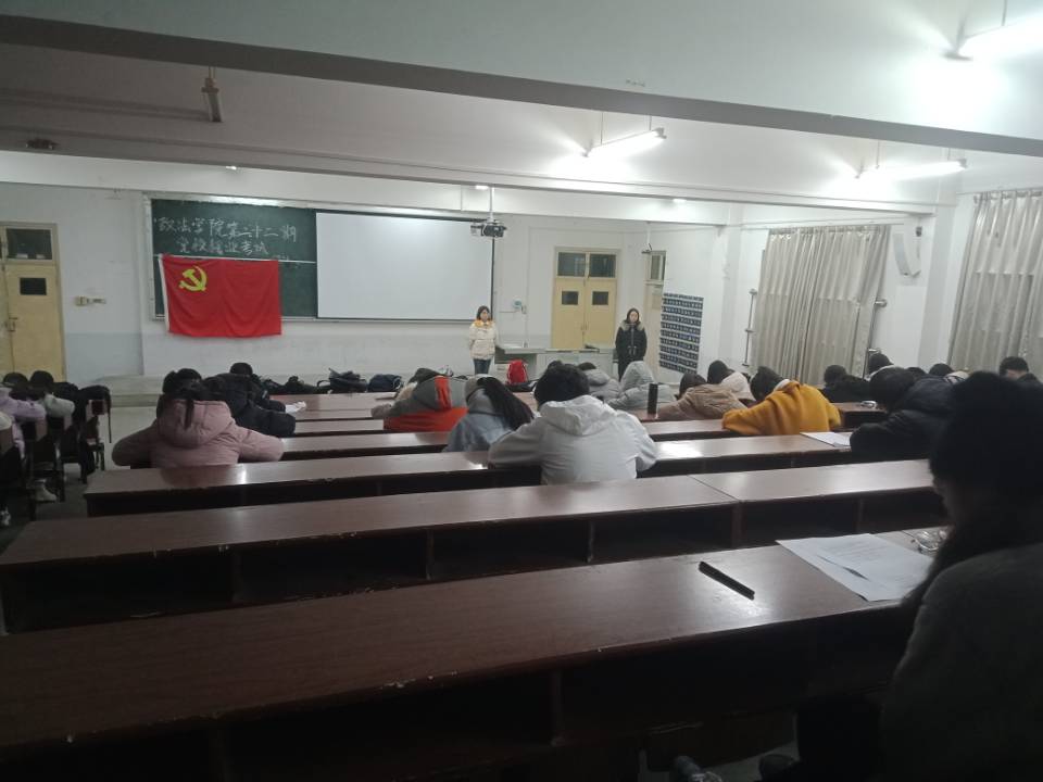 (政法学院 通讯员 程湘君)12月3日晚,政法学院学生党支部在南区四栋JT04教室组织第二十二期党校入党积极分子培训班全体学员进行结业考试。