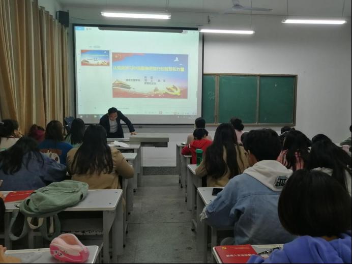 (政法学院 通讯员 王一涵 王一楠)10月27日晚,在南区7栋401教室,政法学院党校第二十六期入党积极分子党校特邀教务处处长聂军教授主讲。聂军带领培训班成员进行以“从党史学习中汲取奋进前行的智慧和力量”为主题的课程学习。