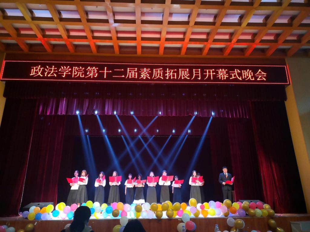 (政法学院 通讯员 蒋一铭)为了丰富同学们的课外生活,挖掘大家的艺术细胞,政法学院文艺部于2021年4月29日晚6:30,准时在致远食堂二楼举办了素质拓展月晚会。参加活动的人员有政法学院副书记汪萃萃、辅导员陈都河川、文艺部及体育部各干事、参演人员以及政法学院学生。