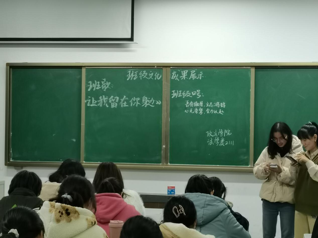 (通讯员 蒋一鸣)11月16日下午,政法学院2021级班级文化建设成果展于各班晚自习教室举行。政法学院2021级全体学生参与本次成果汇报。班级文化建设成果展以班级为单位进行展示。
