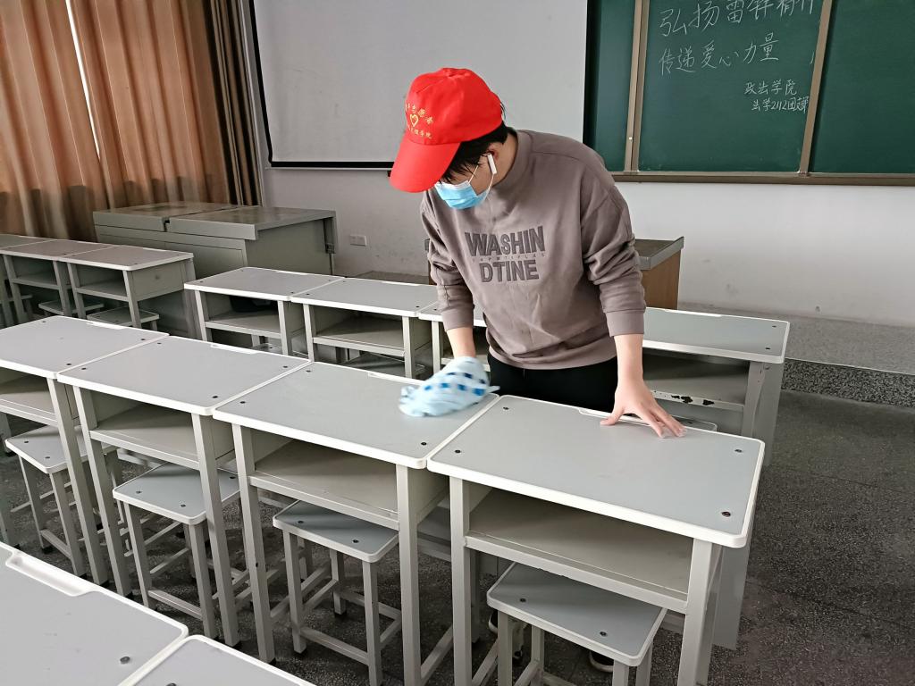 在这次活动中,负责人先分配了每人打扫的区域楼层后,志愿者们便开始了仔细的打扫。摆桌子、摆凳子、擦黑板、扫地、拖地、擦桌子等等一系列活动竞相开展。同学们团结一致、齐心合力,不一会儿便将教室打扫的干净、整洁。