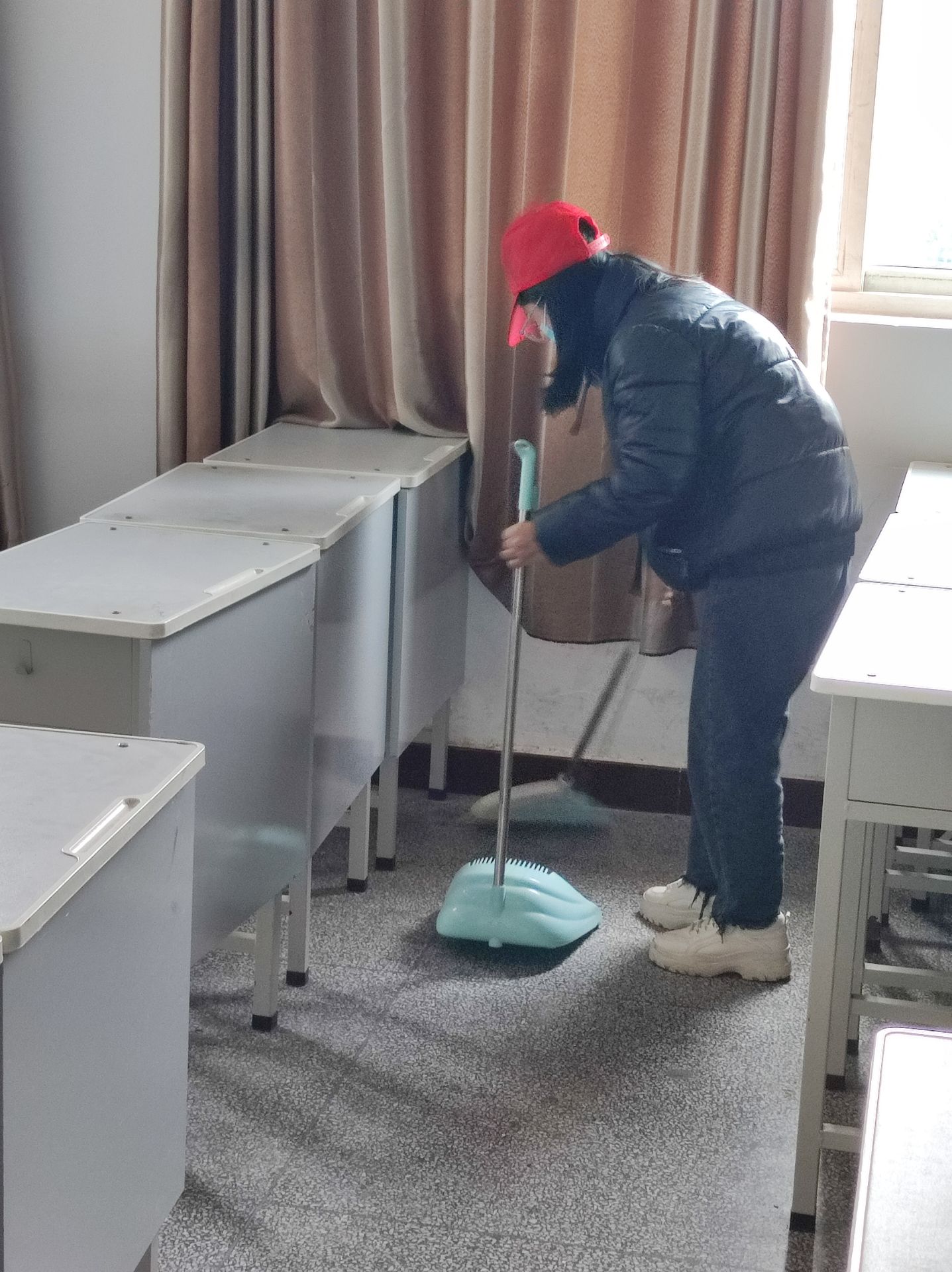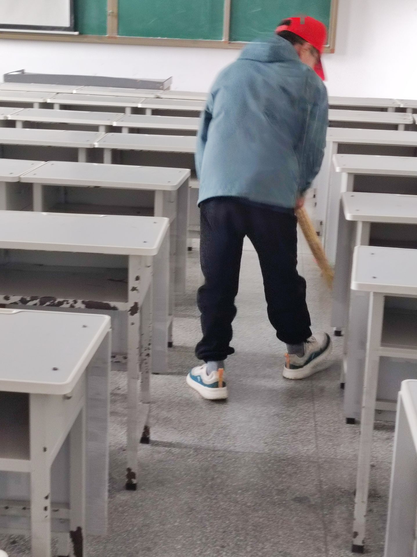 下午1点50分,志愿者们在南区七栋教学楼一楼大厅集合,负责人组织点名,交代了清洁注意事项并将志愿者们分组。安排就绪后,志愿者们拿着清洁工具,开始清扫工作。他们认真清扫教学楼的每个角落,擦净黑板上残留的粉笔灰,摆放整齐每张桌椅,清理抽屉中的纸屑。最后,志愿者们集合合影。