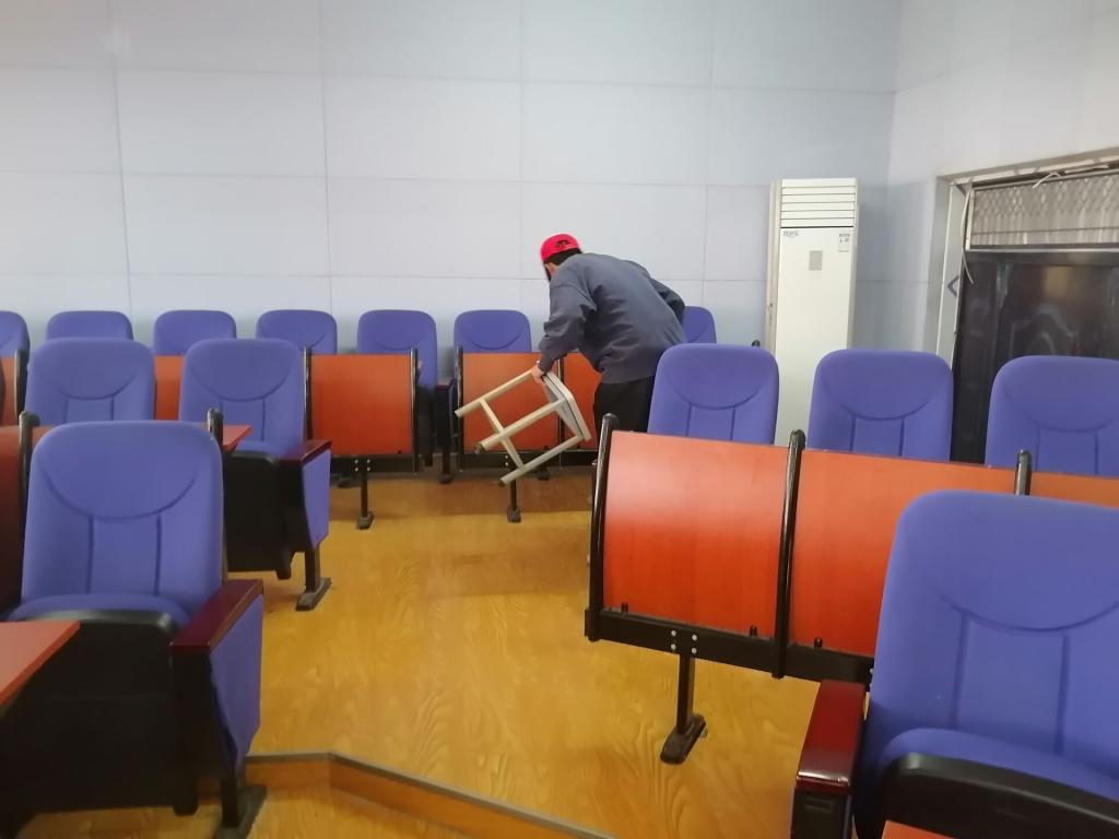 在负责人讲解活动要求和注意事项、分发卫生工具等准备工作后,志愿者们按照分组,认领了各自的卫生区域,进行了清扫工作。他们清扫着地板上的灰尘,清理着座位缝隙间的垃圾,用湿抹布擦拭着黑板以及桌椅板凳。活动结束后进行合影。