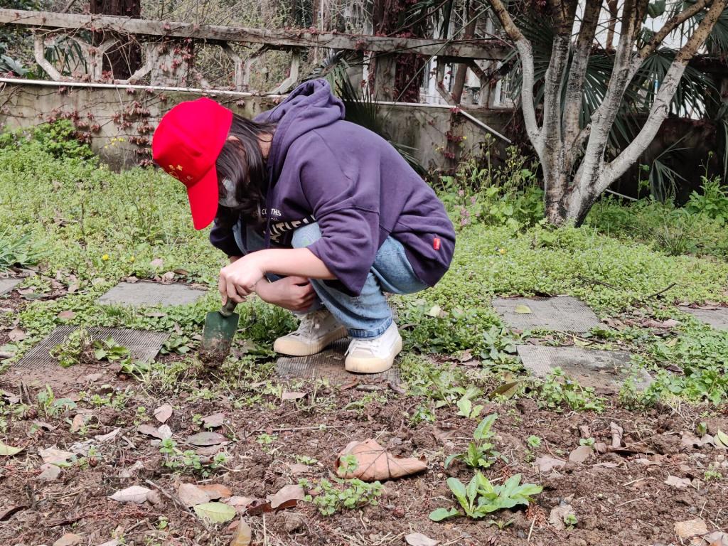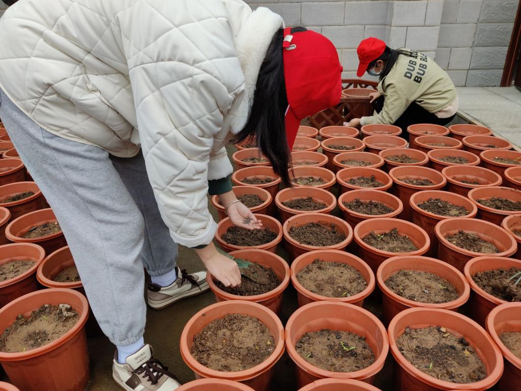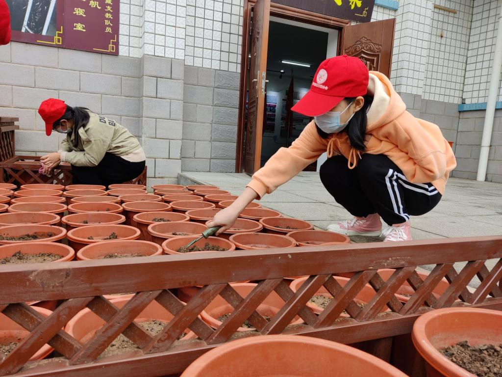 花瓣美丽、颜色各异的格桑花幼苗激发了同学们对格桑花的敬畏与喜爱,同学们合理分工,男生将格桑花展厅打扫干净,为格桑花幼苗松土;女生则擦去护栏的灰尘,播种新的格桑花。之后又转战格桑花园,在格桑花园为格桑花苗除草、松土,不一会儿园区的杂草肉眼可见的少了许多,泥土黏在了同学们的手上、鞋上,但同学们脸上洋溢着青春、幸福的微笑。最后同学们一起合照留念。