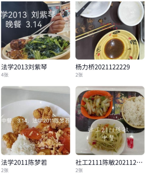活动前建立光盘打卡群,负责人向学生宣传此次光盘打卡活动,并介绍了此次活动的要求以及相关注意事项。同学们踊跃参与,积极地建立自己的打卡相册参与活动。活动期间,参与者们在规定时间内上传自己的用餐照片和光盘照片,每一张照片附带上自己的用餐时间、姓名和班级。最后,根据参与者的打卡情况和光盘情况,评选出光盘小达人。在为期15天的光盘活动中,同学们坚持打卡,彰显了当代学生勤俭节约的优良品质。
