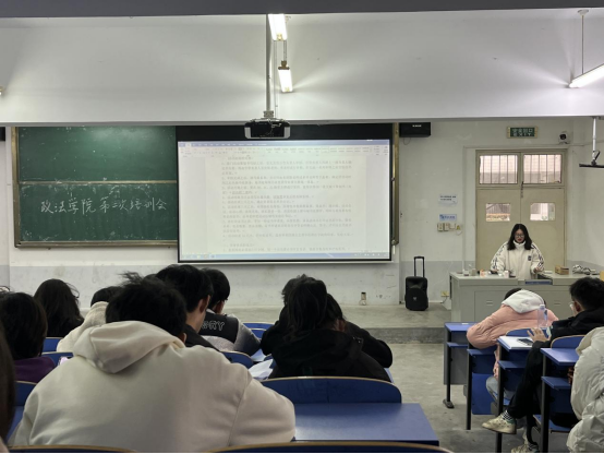 (政法学院 通讯员 张晶晶)为了进一步加强政法学院内部基层建设,增进干部干事对工作内容的了解,政法学院于3月23日下午2时30分,在北区阶梯01教室召开“政法学院第二次干部干事培训会”。培训对象为政法学院全体学生干部、22级全部班委、21级各班三大班委和各部门部分干事。