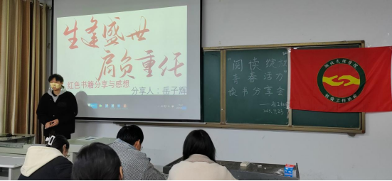 (政法学院 通讯员 艾钰洁 )为助力培养我校师生爱读书的良好风尚,深入开展全民阅读活动,进一步推进“书香校园、文明校园”建设,让师生亲近书籍,与好书为友,与经典对话,与博览同行,开阔视野,陶冶情操,提高文学修养,锻炼其口头表达能力。2023年4月23日湖北文理学院社会工作协会在南区S7—101教室开展了“阅读绽放青春活力”读书分享会。