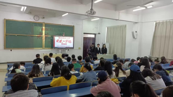 (政法学院 通讯员 张晶晶)为深入宣传贯彻党的二十大精神,加深政法学院学子对二十大精神的理解,营造浓厚的学习氛围,掀起学习贯彻党的二十大精神的热潮。2023年4月27日下午3点50分,“湖小文”党的二十大宣讲团成员宋永杰和黄玉婷在北区八栋A406教室开展了“青年欣逢盛世,古城书学担当”的宣讲活动。辅导员邓仕元与大一全体学生参加了此次活动。