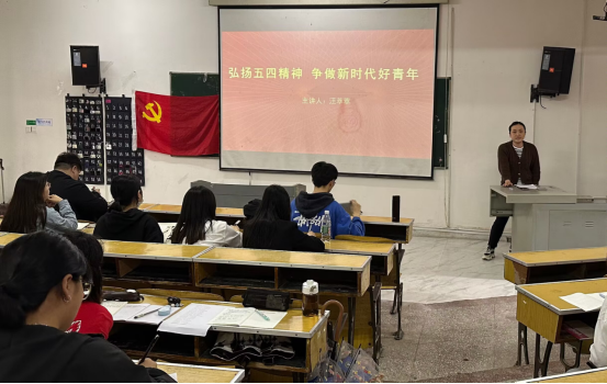 上课之前,积极分子培训班学生干部首先带领大家进行了重温入团誓词,帮助同学们立志弘扬五四精神,肩负历史使命,树立理想。课上汪书记首先向同学们讲解了“五四运动”的历史知识,帮助同学们进一步了解历史,坚定理想信念。随后,汪书记向各位同学列举优秀的青年,号召同学们向榜样学习争做新时代好青年。紧接着汪书记带领大家学习了“习近平给中国农业大学科技小院的学生回信”,引导学生把课堂学习和乡村实践紧密结合起来,厚植爱农情怀,练就兴农本领,在乡村振兴的大舞台上建功立业,为加快推进农业农村现代化、全面建设社会主义现代化国家贡献青春力量。