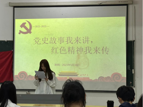 随着活动正式开始,在庄严的氛围中,同学们依次上台发言分享心中的党史故事,铁道游击队、朱德-一条扁担两头挑、长征路上的女红军、董必武勤俭节约等红色故事,在同学们精彩的讲解下更加彰显动人心弦的红色光芒,感染着台下仔细倾听的各位听众。通过多种多样的动人红色故事分享,大家认真了解了党的百年红色历史,学习体会了革命先烈的精神与风貌,并从中汲取红色精神养分。