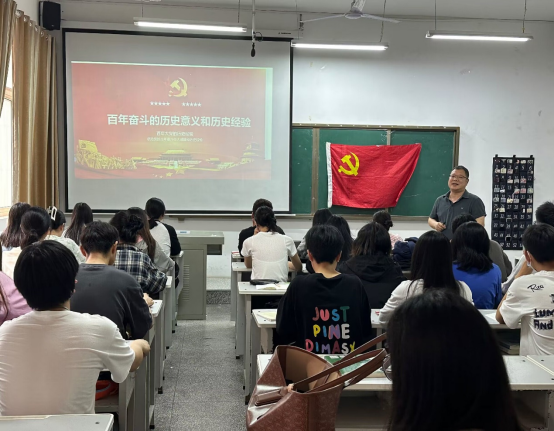 (政法学院 通讯员 胡熠暄)为深入推进同学们对中国共产党成立百年以来的了解,提升同学们对党的认识,政法学院党校培训班于5月16日中午12点30分在南区7栋101教室,开展了以“党的百年奋斗历史经验的决议”为主题的第八次党课。本次授课老师为政法学院副院长王正宇。