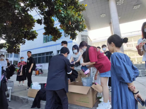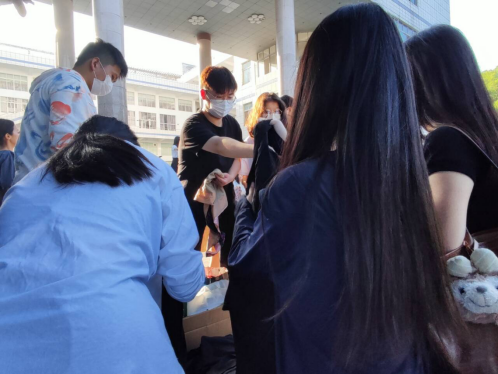 早上6点30分,22级学生到达南区领取学士服,后从南区7栋教学楼借用20个凳子搬到拍摄场地。当毕业生陆续到达现场后,大一级学生充当志愿者,热情地为学长学姐们分发学士帽、流苏、学士袍、垂布;随后,志愿者们维护现场秩序,按照班级顺序组织学长学姐站队。在拍完照片后,志愿者们整理好所有学士服套装,分类齐放,送还到辅导员办公室。之后又返回拍摄场地,将所借用的椅子放回原位。