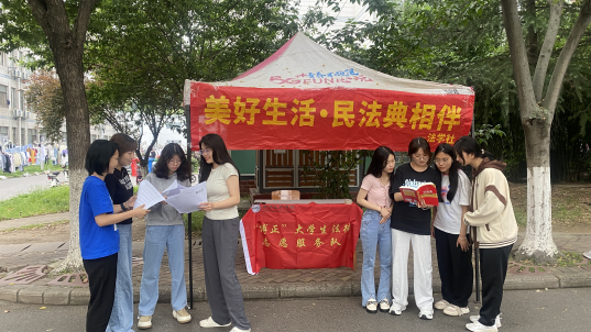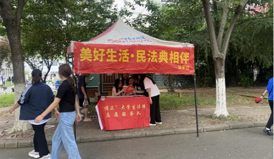 (政法学院 通讯员 廖紫涵)为深入学习贯彻习近平法治思想,贯彻落实党的二十大精神和省第二十大党代会议,宣传科普周,全面落实“八五”普法规划,增强广大群众的法律知识,提升《中华人民共和国民法典》在学生群体知晓率。政法学院法学社和“博正”大学生法律志愿服务队于5月25日在北区宿舍楼20栋开展了“美好生活·民法典相伴”校园普法活动。