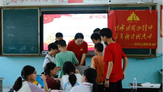 弘扬以伟大建党精神为源头的中国共产党人精神谱系。为了让井冈山精神放射出新的时代光芒,志愿者们以“井冈山根据地的建立”为切入点,向同学们生动形象地介绍了井冈山精神的科学内涵与当代意义。