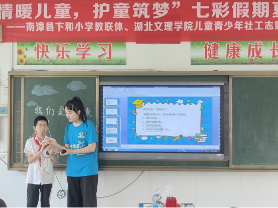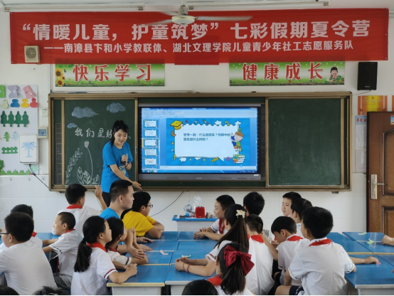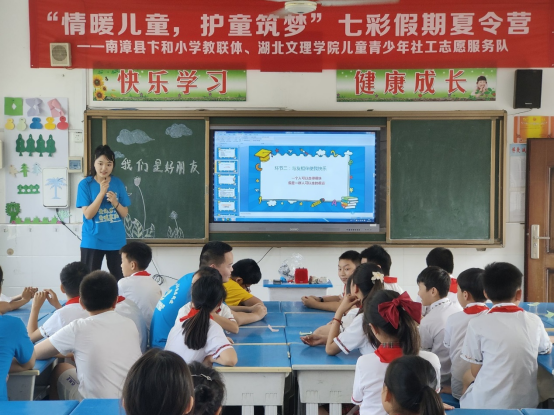 (政法学院 通讯员 孙聪聪)相遇结交友谊,新识共促成长。为帮助广大青年学子在实践课堂中“受教育、长才干、作贡献”,用“心”用“情”呵护青少年的美好童年,促进儿童全面发展。湖北文理学院儿童青少年社工志愿服务队于7月7日在襄阳市南漳卞和小学组织开展了为期15天的志愿服务活动。