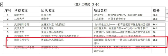 (政法学院 通讯员 吴永爱)2023年7月3日,湖北省生态环境厅、共青团湖北省委公布了第六届湖北省高校“与绿同行”微公益环保创意大赛省赛拟入围名单,政法学院博正大学生法律支援服务队荣获二等奖。