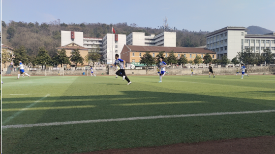 在裁判一声令下,激烈的比赛便拉开了帷幕。比赛伊始,双方都打得比较保守,处于试探性阶段。随着双方对对方球风的了解,比赛开始激烈起来,双方球员也渐入佳境,不时打出精妙的配合和有威胁的射门。双方球员的功夫了得,无论是抢球,传踢,气势凌厉。双方各不相让,进攻、防守,你来我往,精彩纷呈。场外学生也激情洋溢,热情地为队员们加油、叫好,现场气氛十分热烈。在第一轮比赛中,每个球员都毫不示弱,尽情展示团队的热情与默契。场上时时发起高潮,观众连连欢呼叫好。足球场就在比赛进行中一点点升温,感染着在场的每一个人。