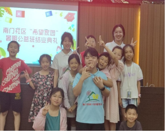 钟婧怡同学参加了“希望家园”暑期志愿活动。她在课堂上开展了手工折纸、唱歌、手势舞,讲故事等多彩的课程。这些活动不仅丰富了孩子们的暑假生活,还激发了他们的创造力和想象力。
