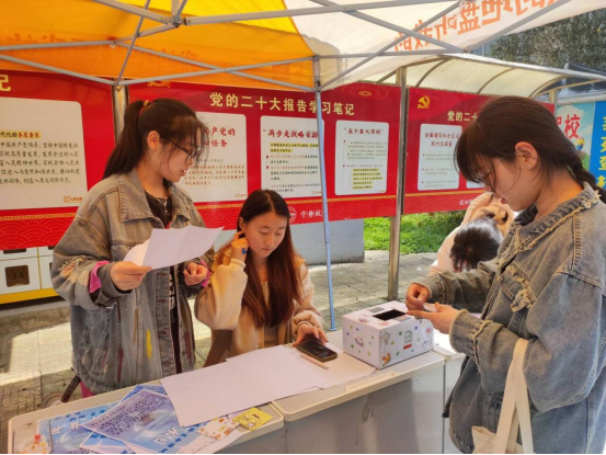 讲解结束后,同学们进行了水资源保护的答题,随机在答题箱抽取五道题目,答对三道及以上的即可获得便利贴一本,通过设立奖品的方式进一步提高了同学们的参加热情。资源环境与旅游学院的钟晓锋同学先后两次来到展台完成两幅绘画作品,“展台氛围轻松愉快,活动主题鲜明有意义,受到你们的激励我也想尽自己的一份力宣传世界水日”她说道。志愿者刘一苇也说到“在展台活动中,我认识到志愿服务既是‘助人’,亦是‘自助’,既‘乐人’,也‘乐己’。”