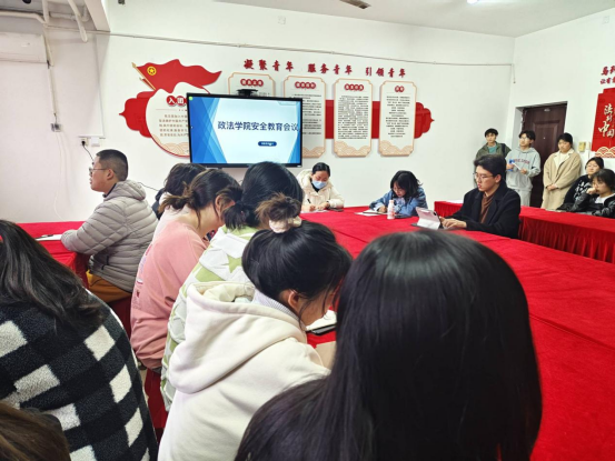 (政法学院 通讯员 何子涵)为进一步增强学生校园安全意识,保障广大师生的人身安全和财产安全,切实筑牢校园安全防线。政法学院于3月27日晚上6点在北区11栋3楼政法学院“一站式”学生社区召开班委及寝室长消防安全教育会。出席本次会议的有政法学院党委副书记汪萃萃、学工办主任陈都河川、辅导员邓仕元、李竹颖、何子涵,以及全体寝室长、主要班委。