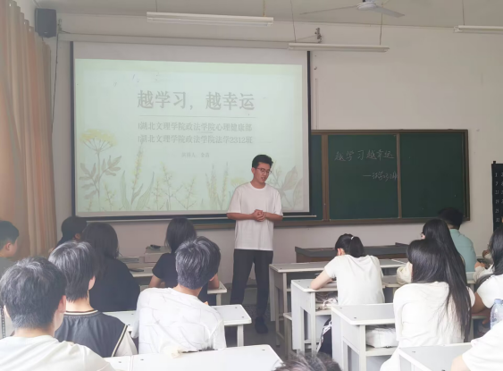 (政法学院 通讯员 邱钢)为进一步推进学院心理健康教育工作,普及心理健康知识,让同学们对于大学学习具有更加深入地了解,政法学院法学2312班于5月24日上午10点20分在南区七栋103教室开展了“越学习,越努力”主题心理班会。政法学院23级新生辅导员何子涵、校心健与院心健相关人员、法学2312班全体同学参与了此次活动。