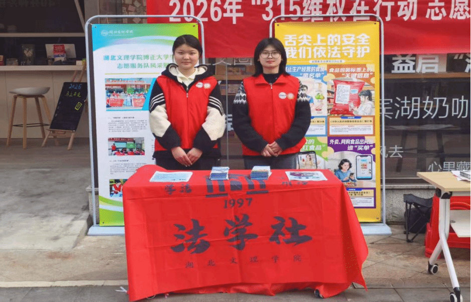 (通讯员 张连恩)为普及《中华人民共和国消费者权益保护法》,提升师生依法维权意识与能力,同时为法学社成员搭建理论联系实际的实践平台,湖北文理学院法学社于2026年3月15日至17日开展“守护消费安全,弘扬法治精神”主题系列活动,以校内实践与校外联动相结合的方式,推动法治观念深入校园与社区。